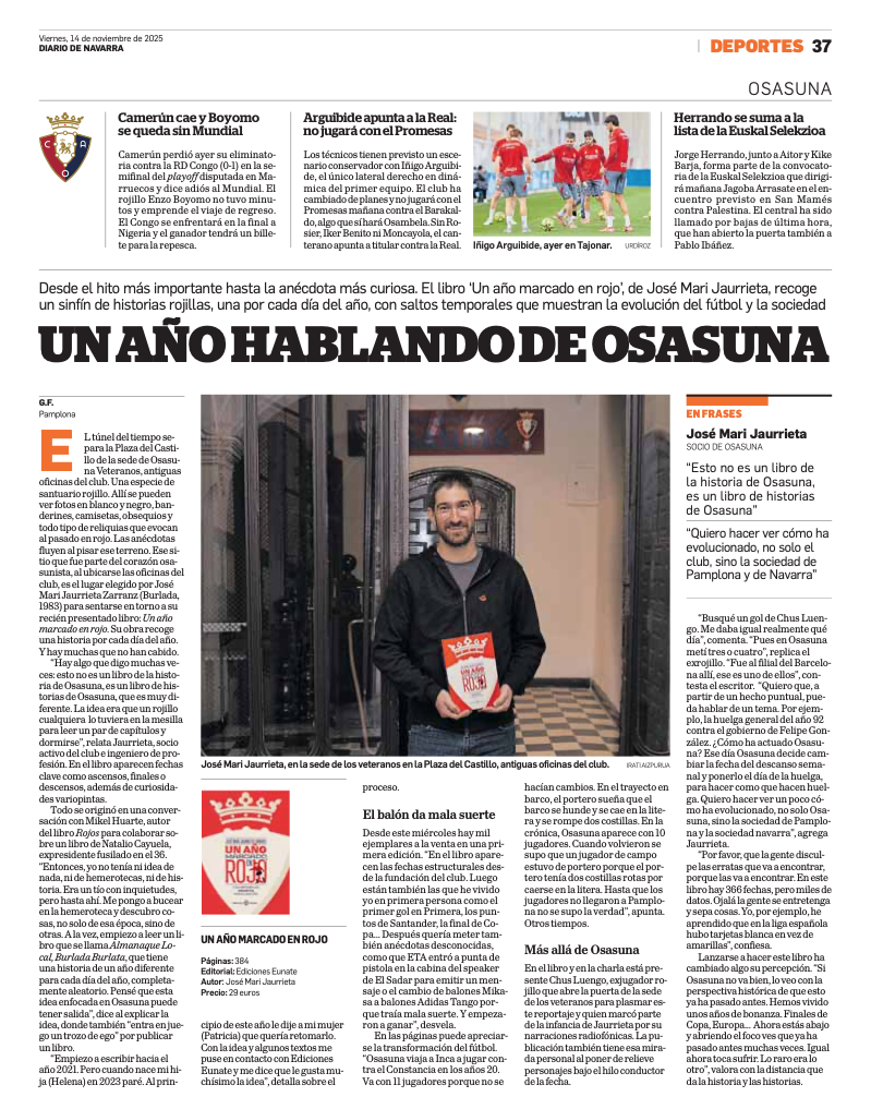 No son únicamente goles, son desplazamientos de aficionados, fichajes, decisiones polémicas, gestas históricas, tropiezos insólitos, gestiones arriesgadas –¿sabías que el presidente rojillo ofreció al Real Madrid ser su club filial en 1945?–, personajes singulares: desde el alcalde-presidente hasta quien bautizó El Sadar; desde el portero que se cayó de una litera hasta los navarros en México que regalaron un autobús.